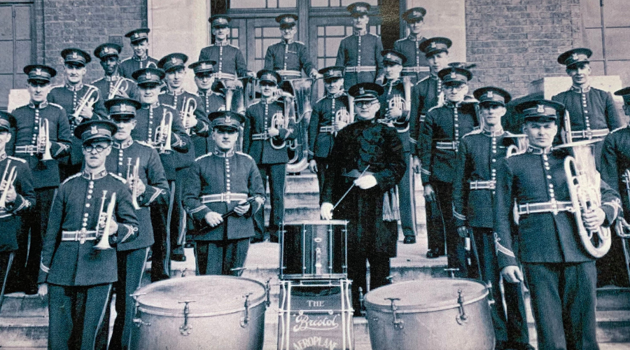 BAC Works Brass Band 1940 showing band leader George Yabsley. Photo courtesy of Aerospace Bristol Museum.