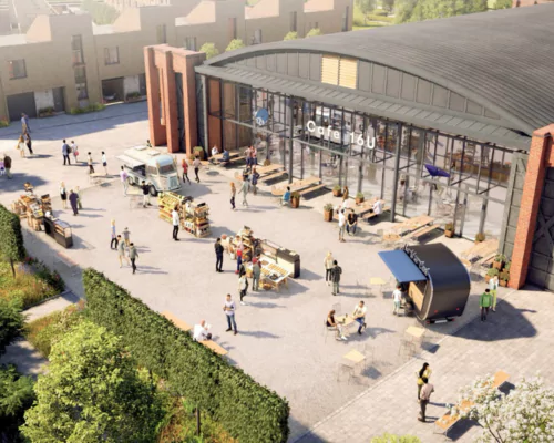 A new local, social hub in a Grade-II listed hangar for Bristol at Brabazon.