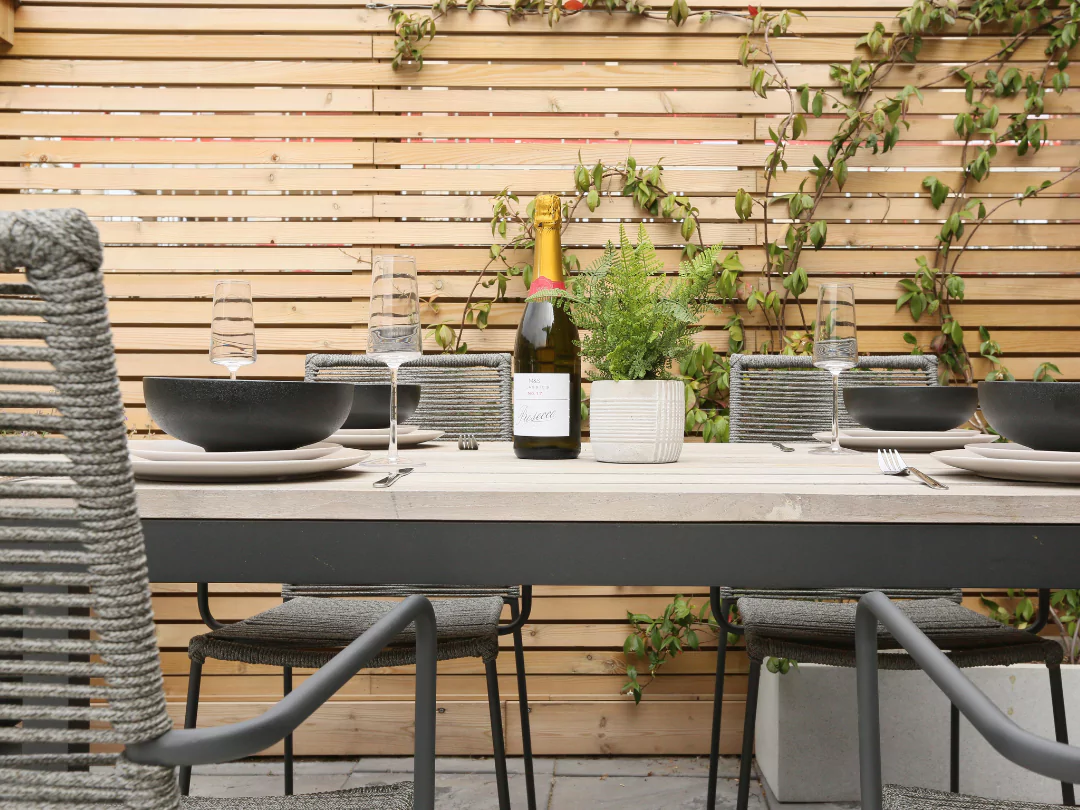 The open-plan living area downstairs is perfect for entertaining, while upstairs you’ll find two good-sized double bedrooms, a sophisticated bathroom and a private study.